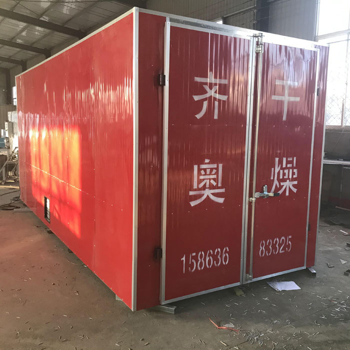 安装电加热设备、产生热空气的空间,在适当位置安装送风机,风机强制风循环,使烘干机内上下温差小,独特的可调式分风多孔板,保证温度均匀.