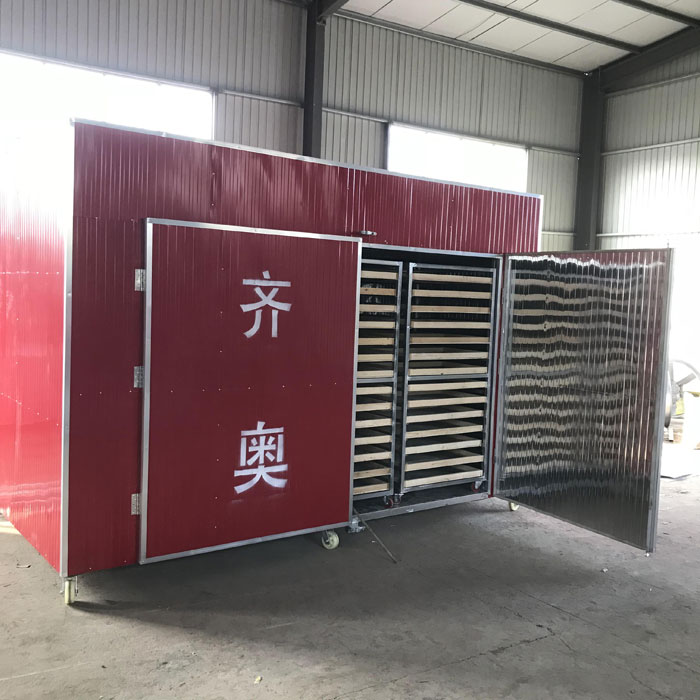 循环风机将热风送入热风通道,再通过托盘架上的小孔进入物料室,采用这种左右两侧送风方式,使烘干更加均匀。