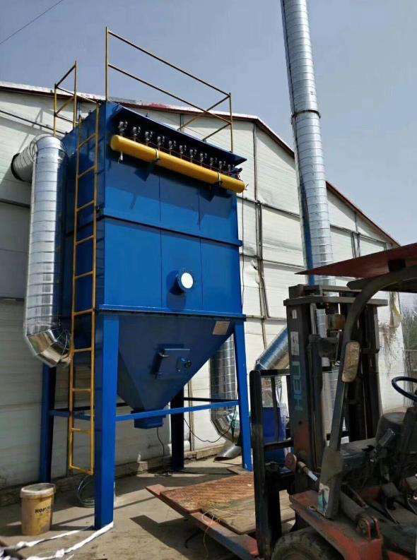 工作时是由进气口进入灰斗或者有的是通过敞开的法兰口进入到滤袋室的,滤袋会将粉尘进行过滤,洁净的空气会通过滤袋进入到净气室,然后由脉冲单机除尘器的风机抽出到大气中,粉尘则会降落到滤袋的表面,而滤袋除尘器的阻力则会不断上升,所以需要我们定期滤袋上的粉尘,清灰时程序控制器定时顺序起动脉冲阀通过喷吹孔眼喷出和通过文氏管诱导数倍于一闪风的周围空气,并伴随着气流的反向作用抖落粉尘达到清灰的目的。
